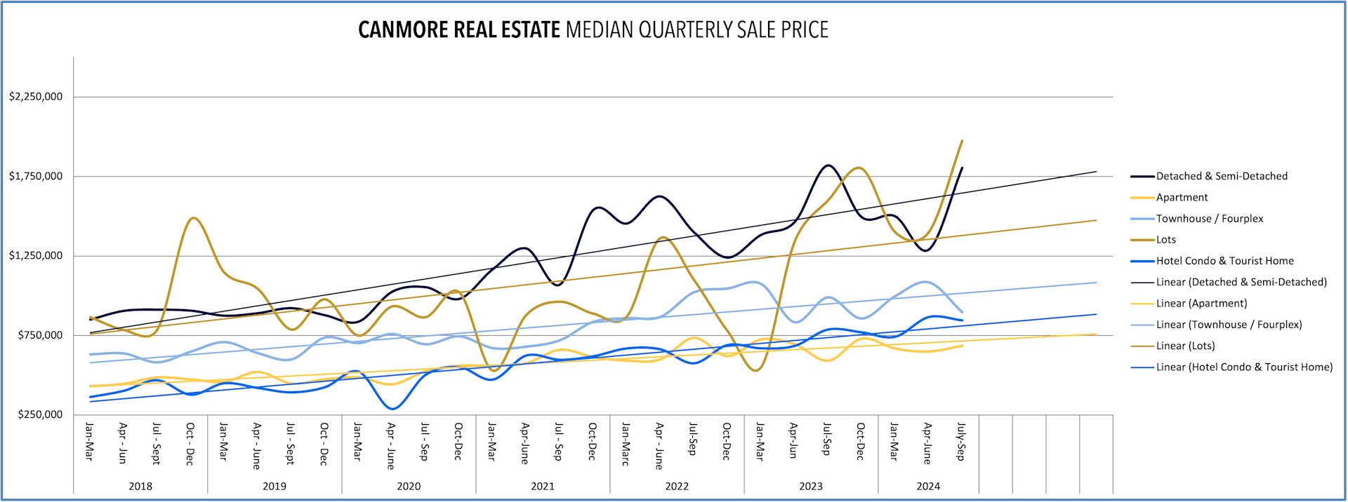 The third quarter of 2024 has been a vibrant period for the Canmore and Bow Valley real estate market, marked by a significant milestone, evolving trends, and changing market dynamics. With a record-high average sale price for detached and semi-detached homes and inventory fluctuations across various property types, this quarter provides valuable insights for both buyers and sellers.