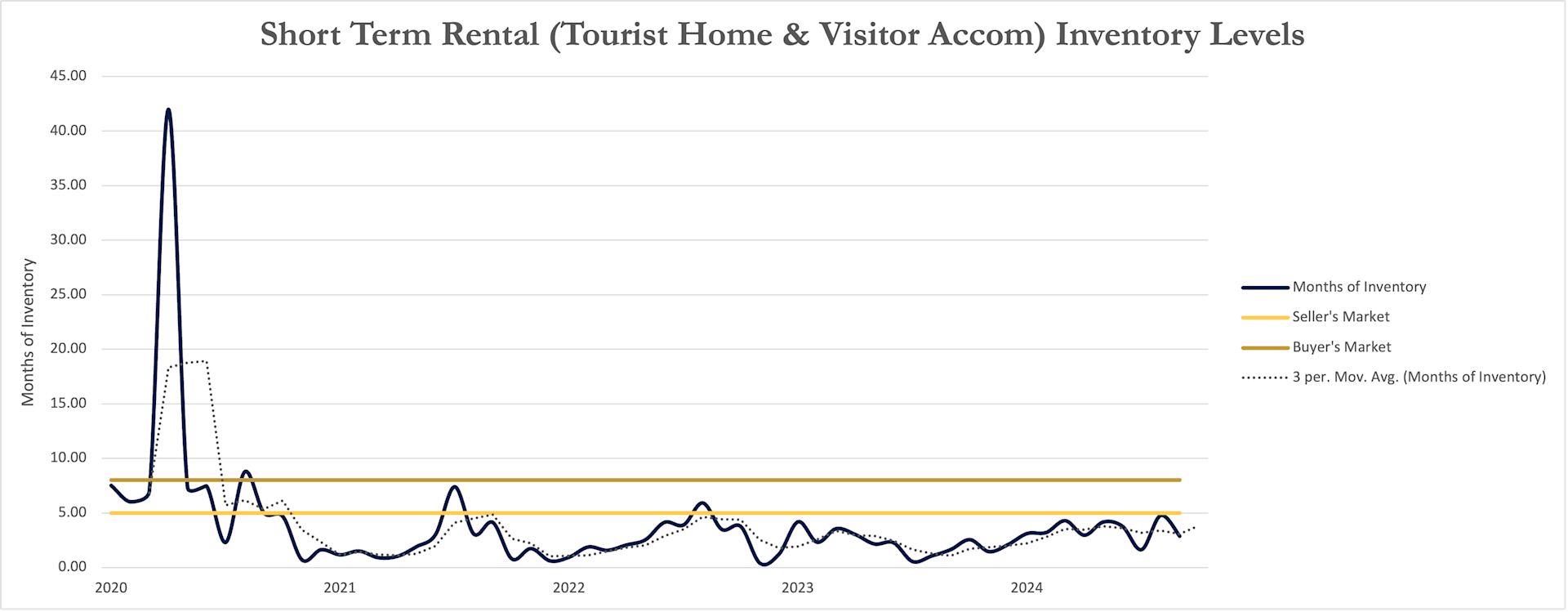 The average days on market (DOM) for properties in Q3 2024 were relatively consistent with previous quarters, reflecting a steady pace of sales and continued buyer interest. Detached and semi-detached homes typically sold faster than other property types, given the heightened demand and limited inventory in this segment. The DOM for short-term rental properties and townhouses has been more variable, depending on the specific properties and developments on the market at any given time.