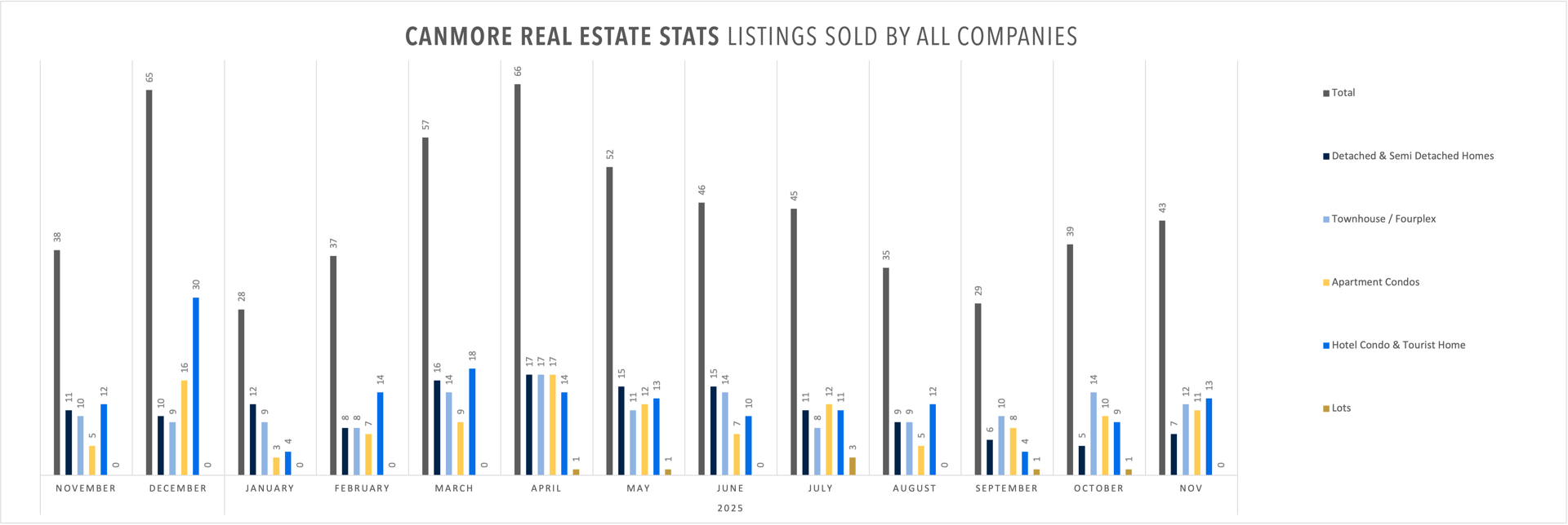 December is a transitional month in the Bow Valley. Even as listings decline, the broader trend is a healthy recalibration from the October peak rather than a market downturn.
