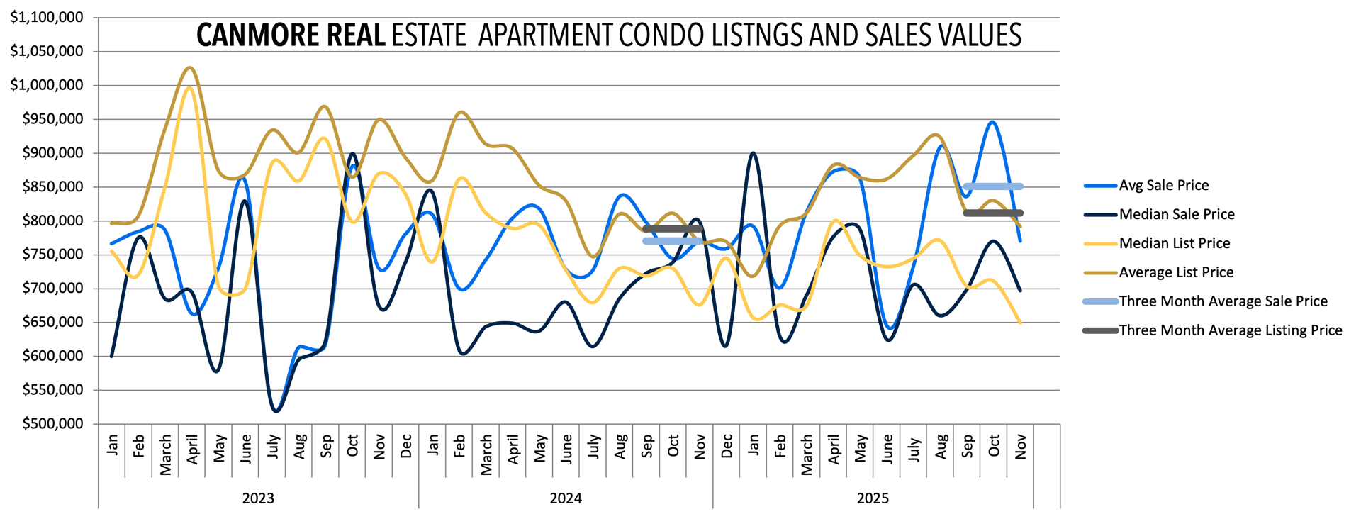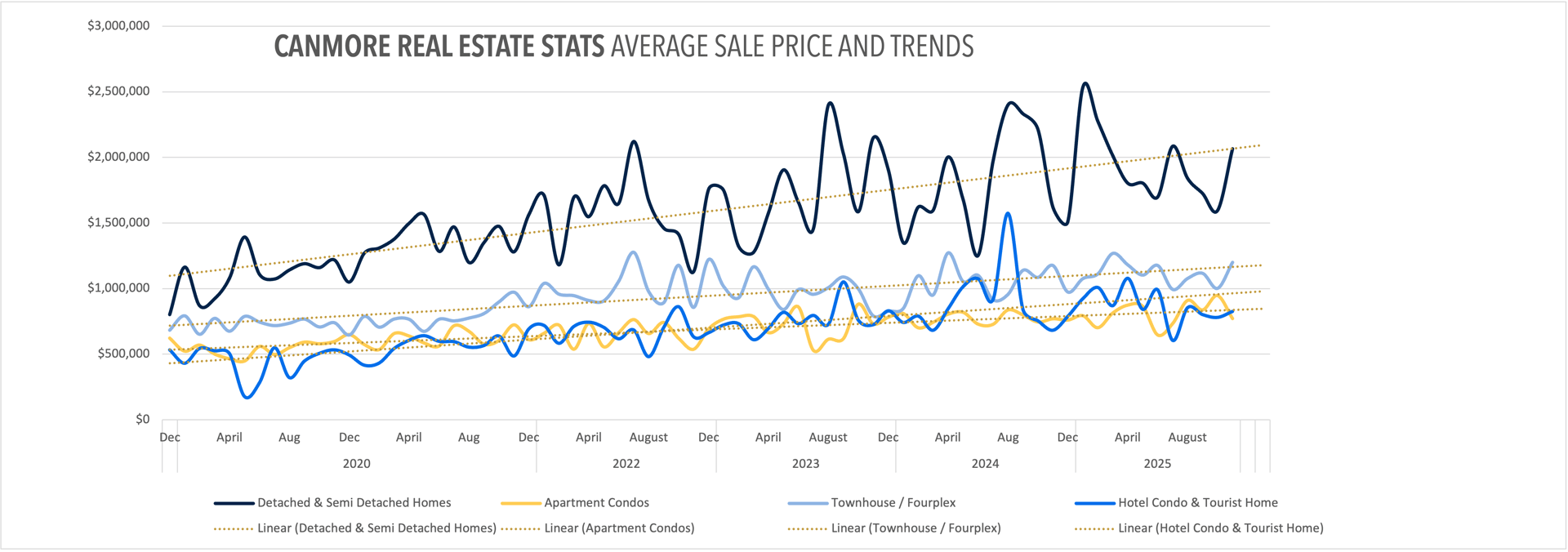 As 2025 winds down, the Canmore and Bow Valley real estate market is moving into its familiar seasonal pattern. Active listings eased across nearly every property category this month—a trend we expect heading into winter—but remain meaningfully lower than the peak inventory levels seen in October. This shift offers valuable insight into where the market is heading as we prepare for 2026.