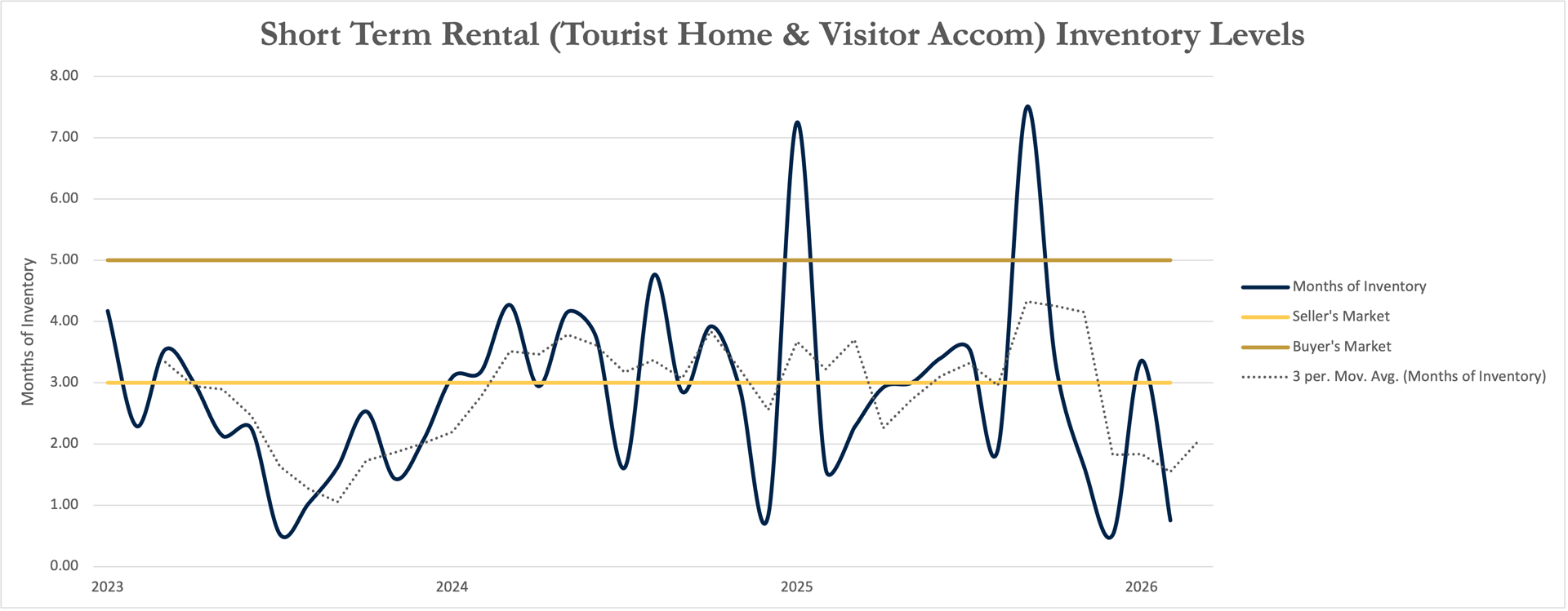 While new development releases can cause temporary fluctuations in sales numbers, resale STR properties remain relatively scarce. As we approach the summer tourism season, investor demand for these income-generating properties typically strengthens due to the region’s strong rental performance.