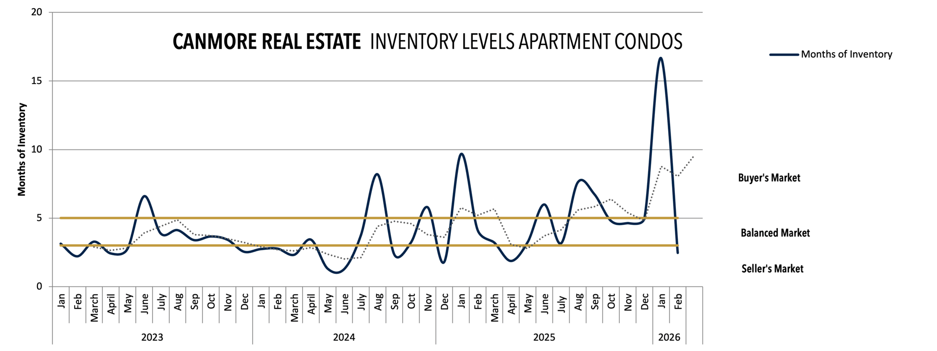 Apartment condos remain an important entry point into the Canmore market for first-time buyers, downsizers, and investors seeking a low-maintenance mountain property.