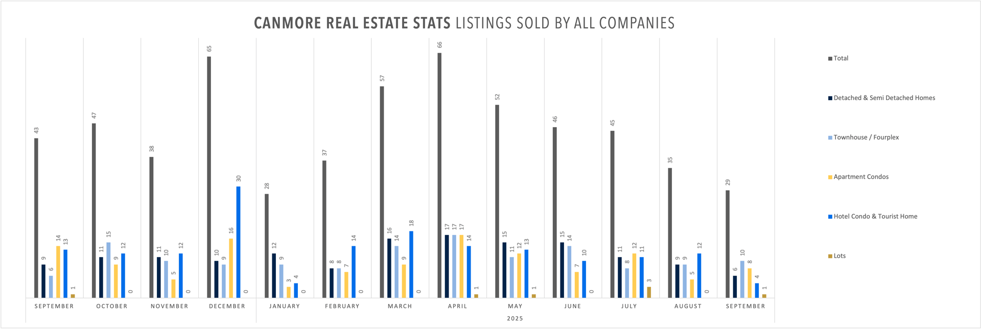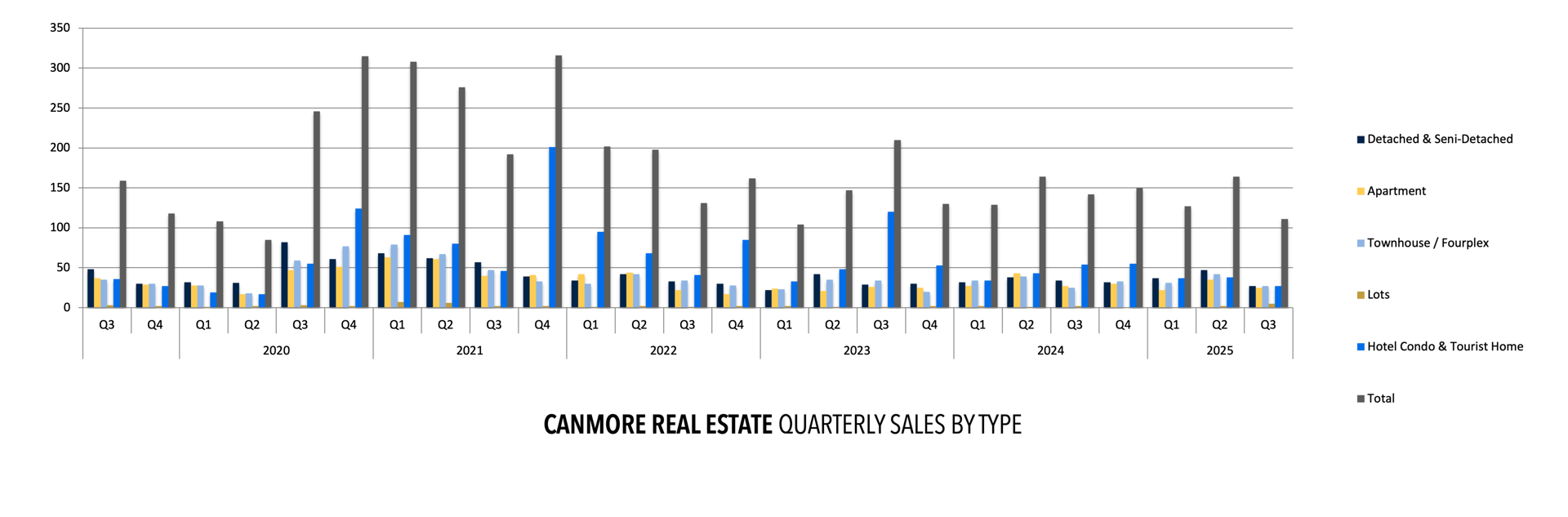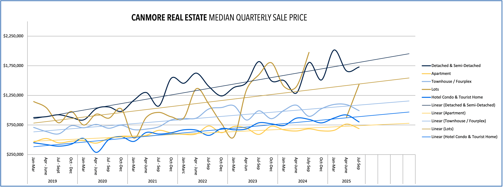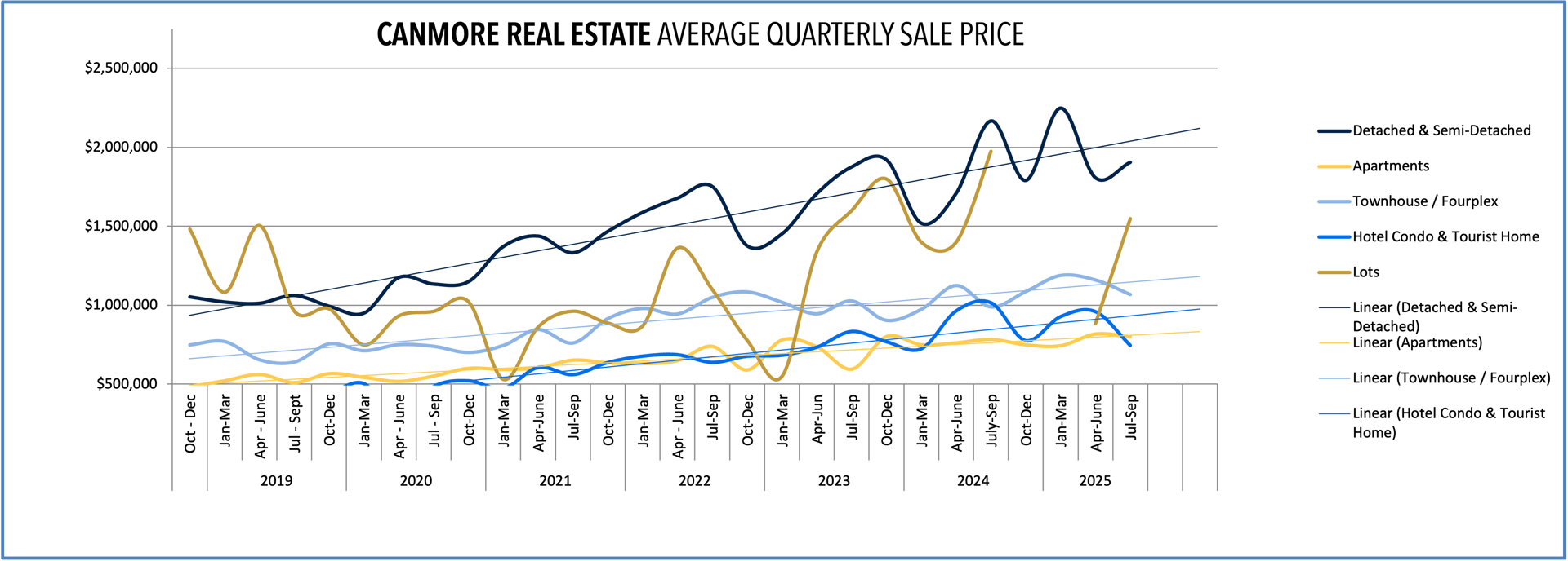 - Lot Sales in Q3: 5 transactions — small in number, but notable given Canmore’s limited land supply.