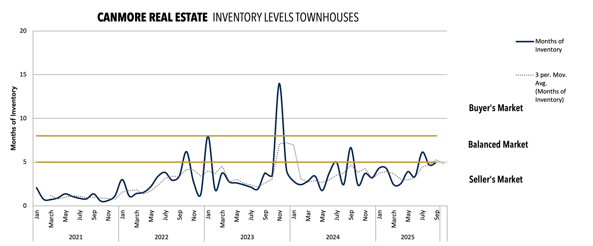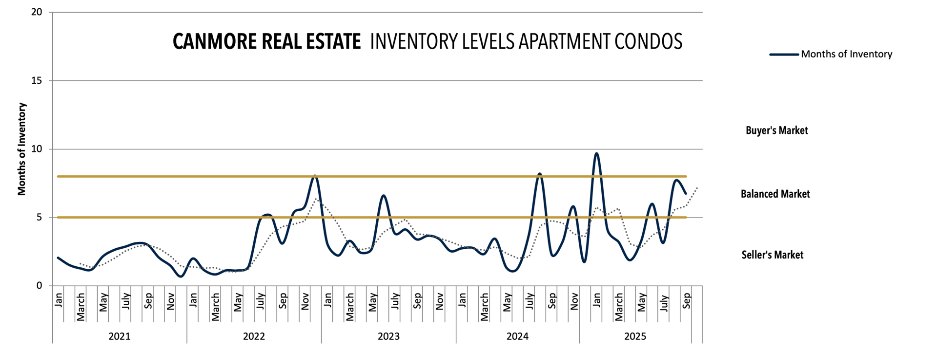 The Canmore real estate market is entering new territory with 213 active listings — the broadest selection in nearly five years. Detached homes are firmly in buyer’s market conditions, while townhomes, apartments, and short-term rentals remain more balanced. For buyers, this is the most choice we’ve seen in years. For sellers, thoughtful pricing, staging, and marketing are essential to stand out in a more competitive environment.