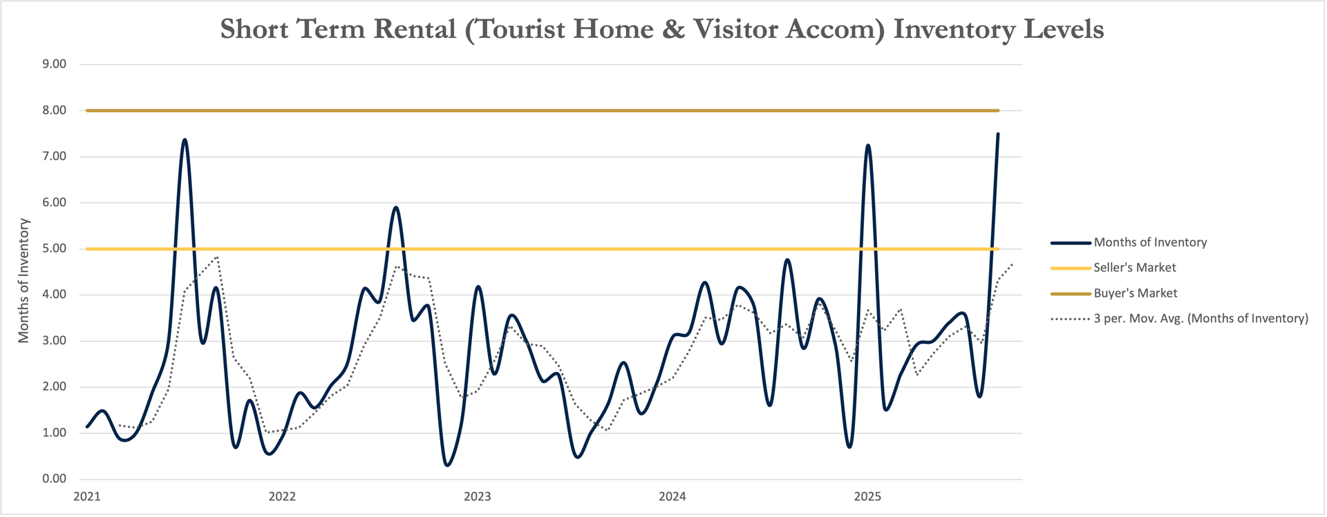 The short-term rental (STR) market continues to evolve. Sales in September were limited (only four transactions), yet median pricing for Q3 settled at $797,500 — well above pre-2023 levels.