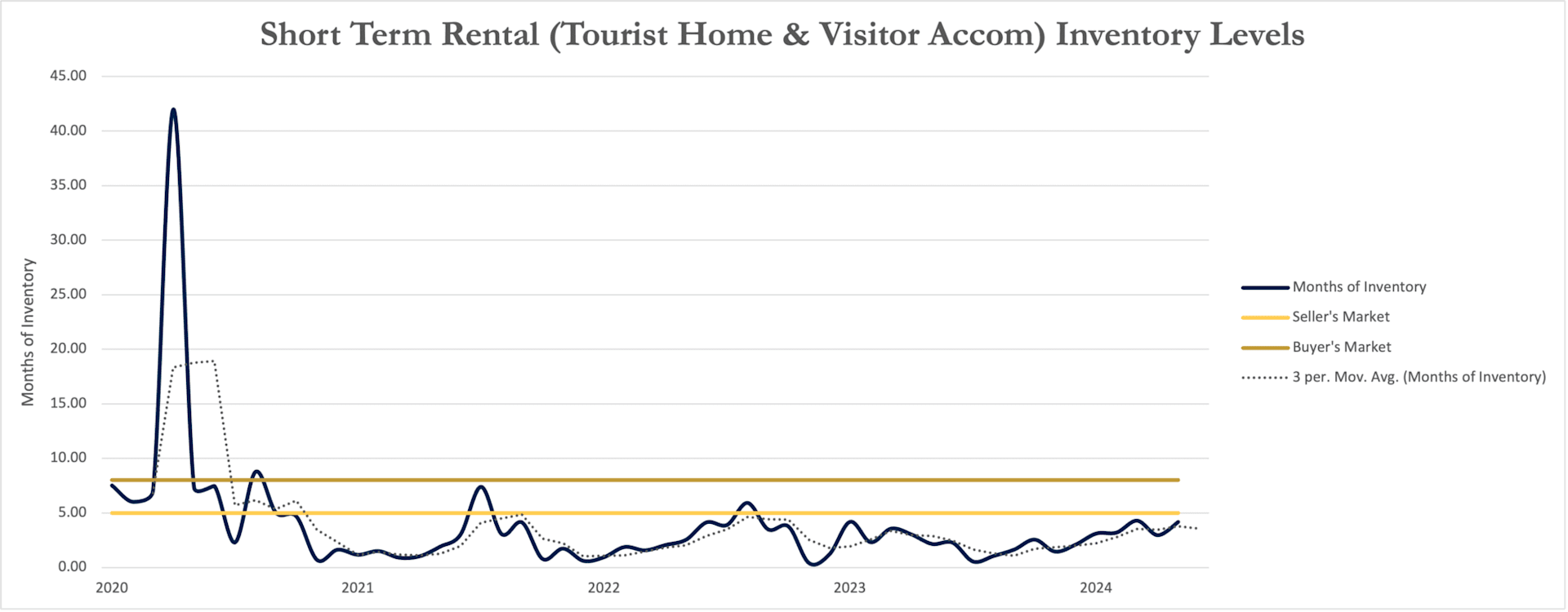 For residential properties, we have just over two months of inventory, which is indicative of a strong seller’s market. Short-term rental properties are also in a seller’s market, with inventory levels rising to just over four months. These sales occurred prior to the recent Bank of Canada rate change, suggesting that buyers who have been hesitant may now feel more confident to enter the market in the coming months.