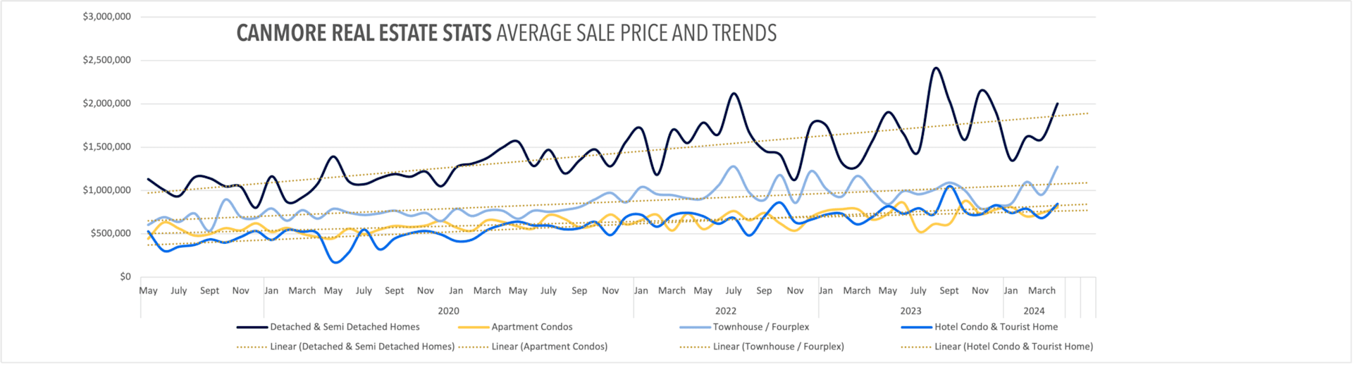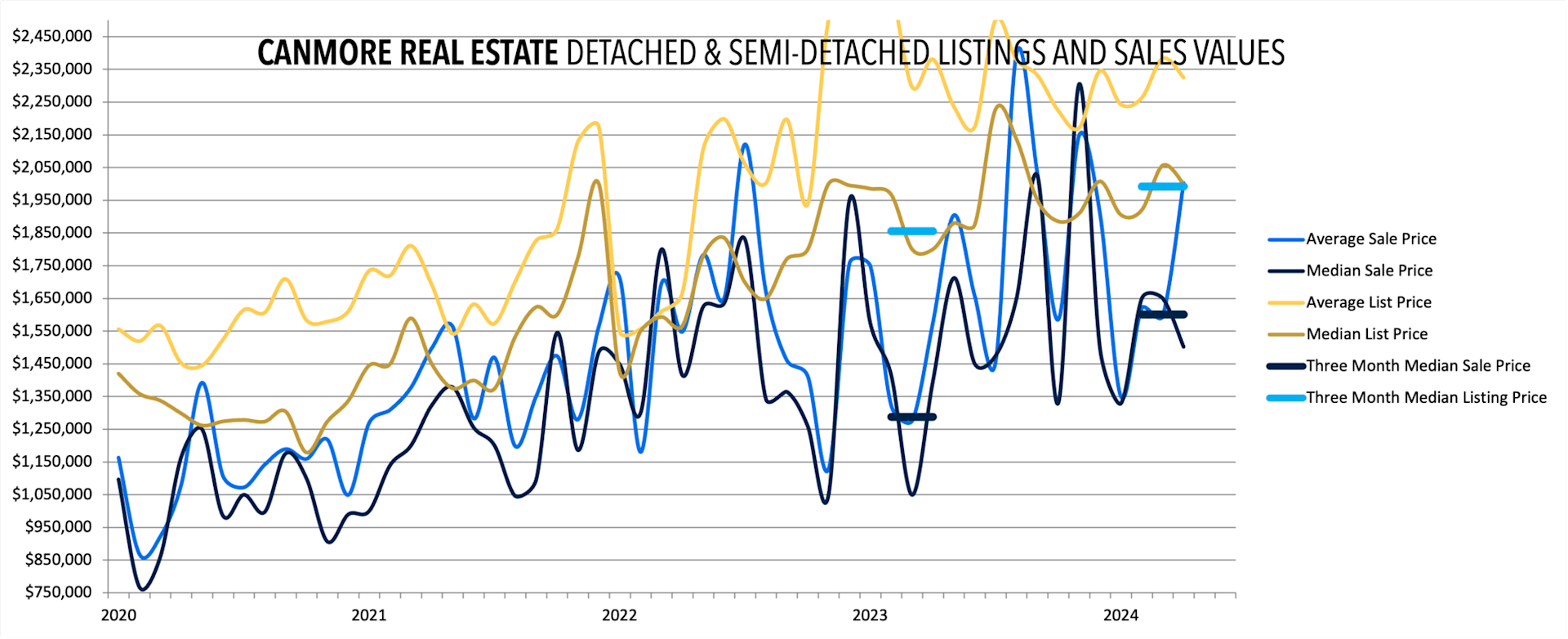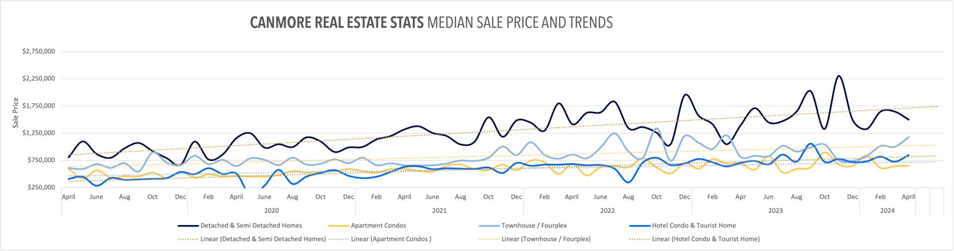 Despite this week’s snowstorm, the spring real estate market has sprung in the Bow Valley. Canmore’s real estate landscape continues to evolve, offering unique opportunities and challenges for buyers, sellers, and investors alike. As we move deeper into 2024, it’s crucial to understand the market dynamics that are shaping property values and inventory levels across various segments. Here’s a closer look at what’s happening in Canmore’s real estate market, from detached homes to short-term rental properties.
