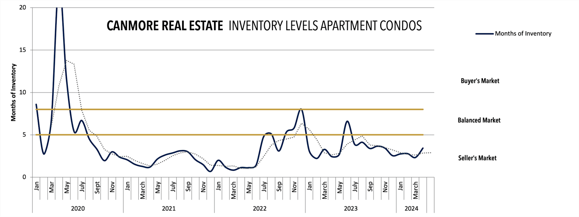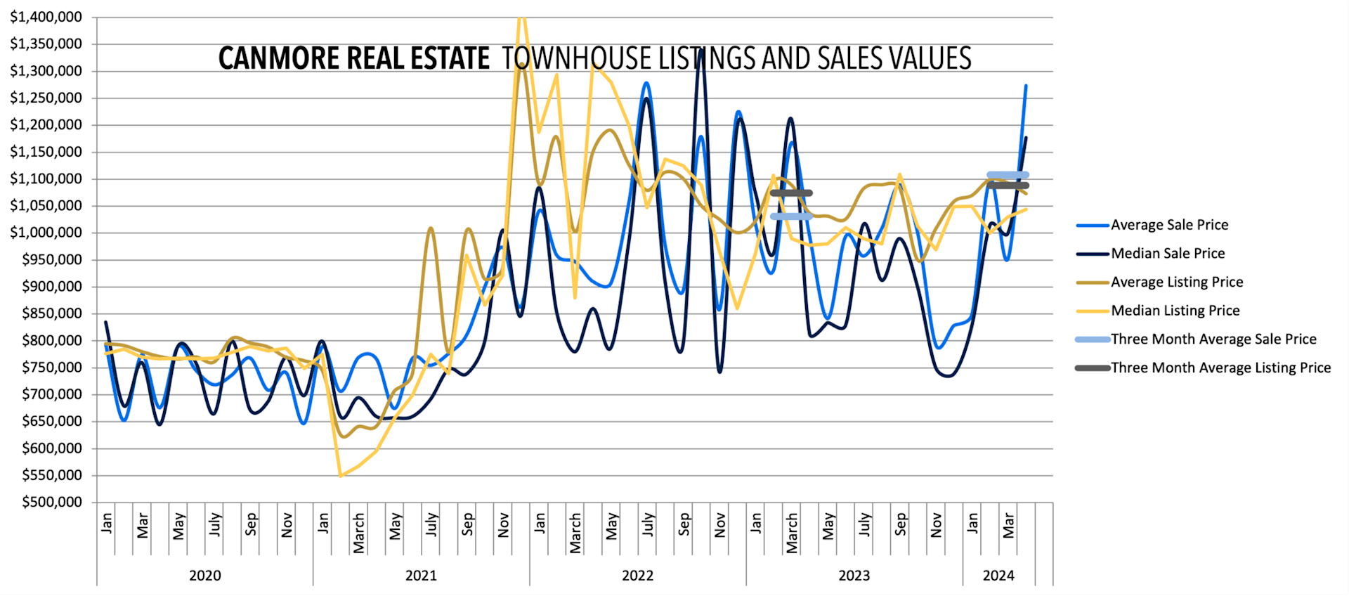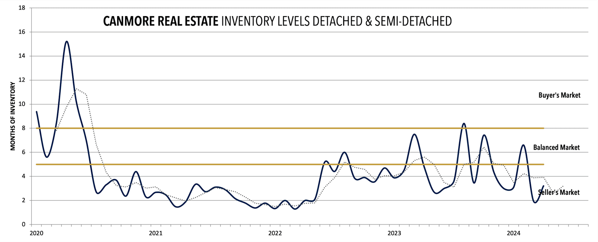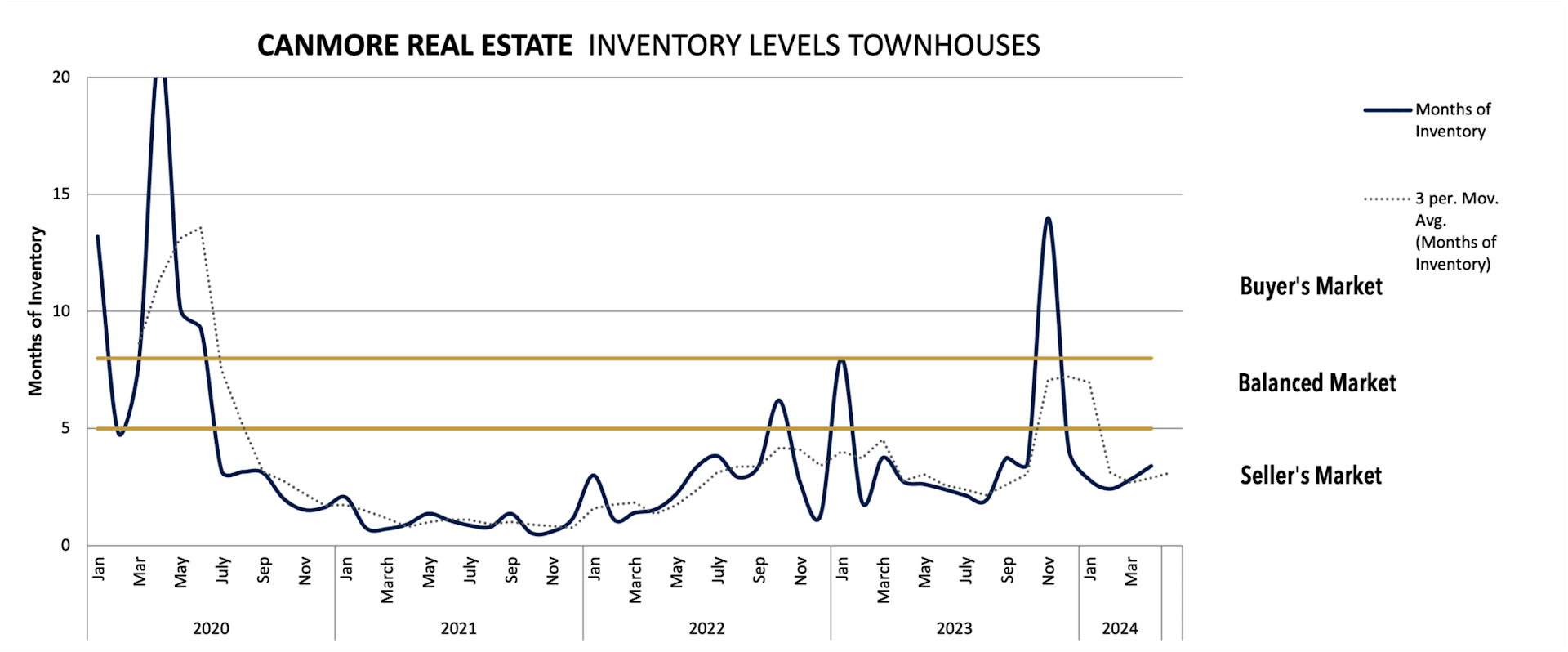 Townhouse inventory in Canmore has experienced significant ups and downs, reflecting a market that is responsive to both macroeconomic influences and local demand shifts. The current trajectory towards a seller’s market suggests increased interest in townhouses, partially due to their affordability relative to detached homes and appeal to both full-time residents and seasonal second home owners.